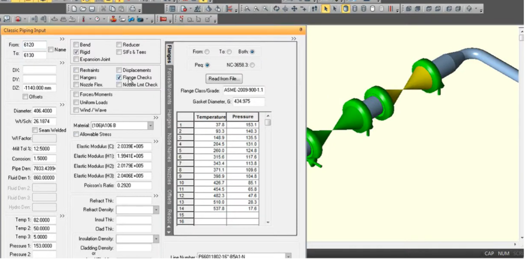 - Modeled Piping System: Built a detailed digital model of the piping system within CAESAR II, incorporating all relevant geometries, materials, and operating conditions.